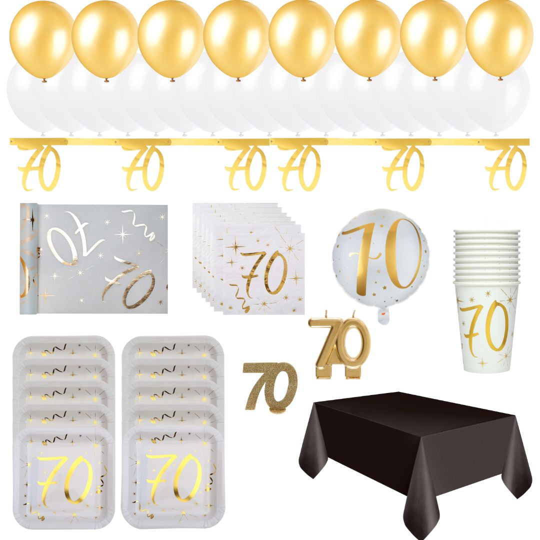Celebrate in style with our 70th Birthday Gold Party Bundle! This all-inclusive bundle is designed to impress and accommodate up to 20 guests. Featuring elegant gold dinner plates, cups, beverage napkins, a stunning gold foil balloon, a metallic table runner, and more, you’ll have everything you need for a fabulous celebration.