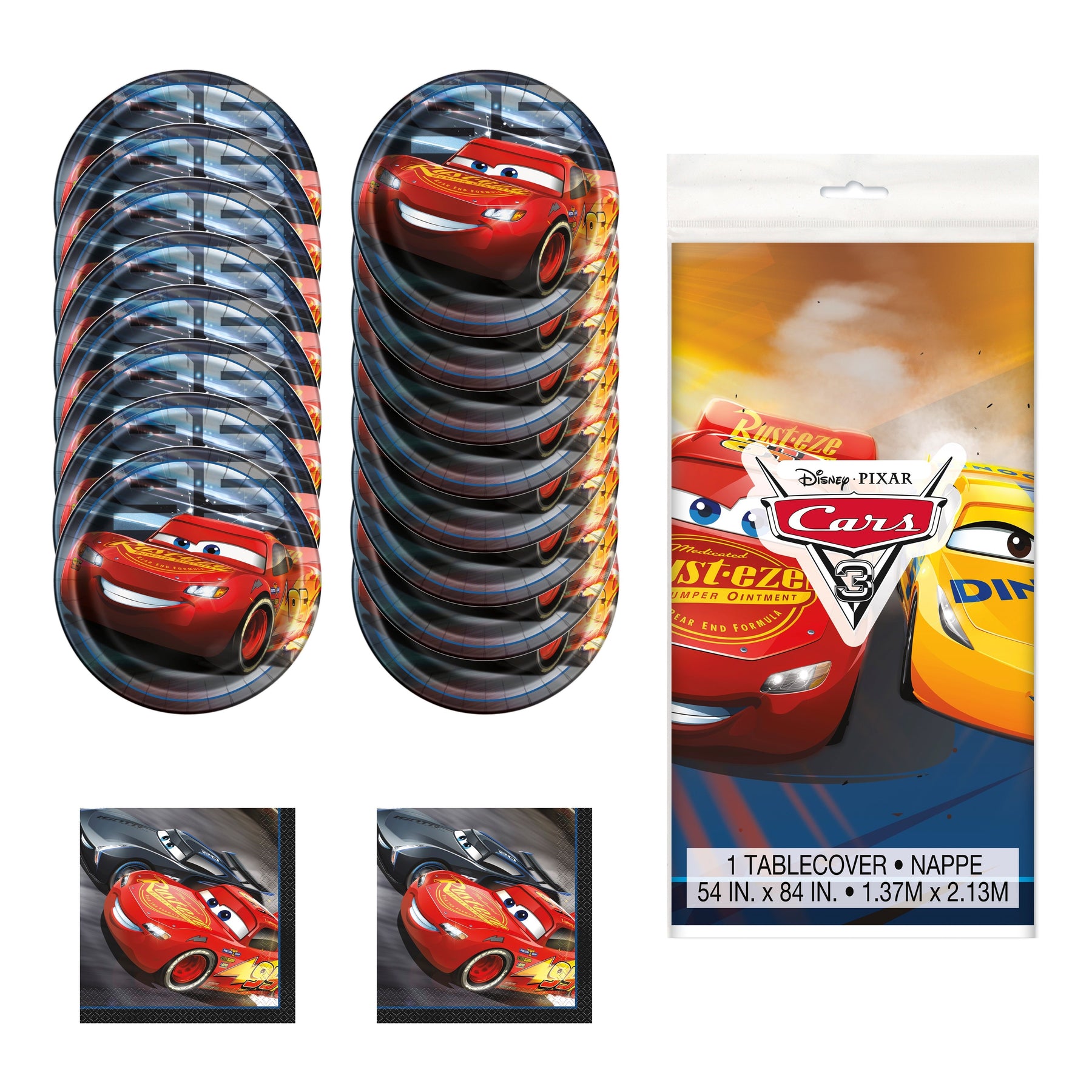 - Contains 16 dinner plates featuring beloved Cars character Flash McQueen.