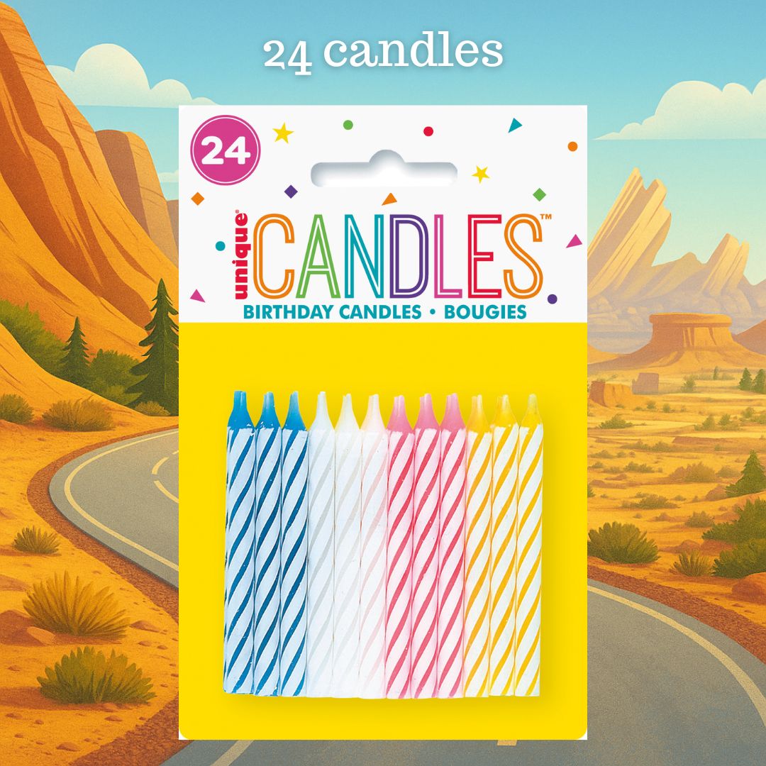 2. Our party bundle serves up to 8 guests, including themed plates, napkins, cups, tablecloth, and 24 candles.
