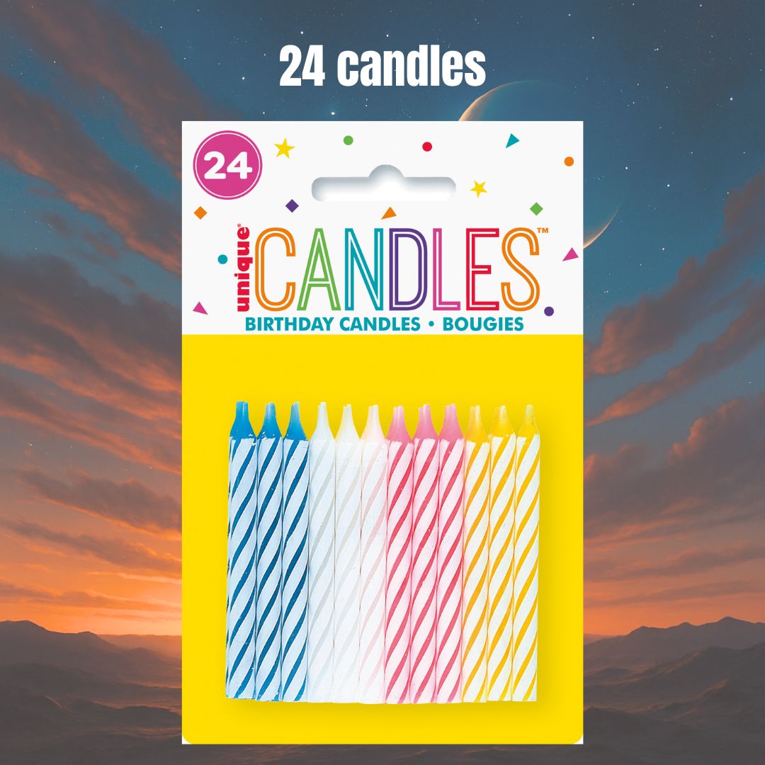 Perfect for up to 8 guests, this bundle includes 8 dessert plates, 16 luncheon napkins, 20 beverage napkins, a tablecloth, 8 cups, and 24 candles, ensuring a complete party setup for a memorable event.